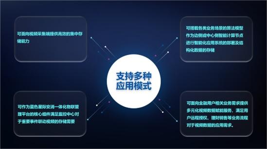 蓝色星际VM系列智能存储一体机通过提升视频数据的应用价值,在金融行业安保、运行、个金等各类业务条线场景中皆表现出广阔使用空间,真正让用户做到在防范外部侵害、内部风险的同时,实现与业务发展全面赋能。