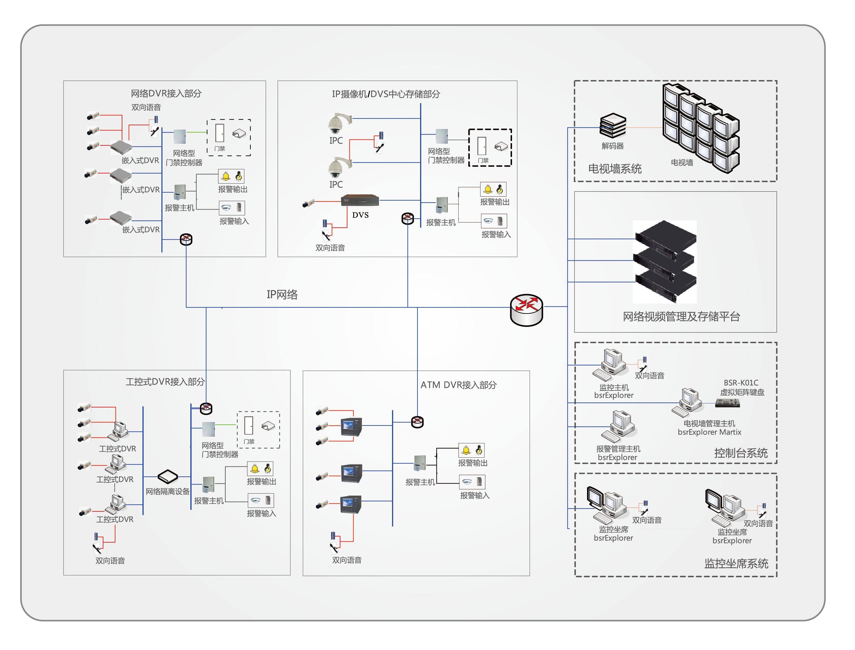 BlueStar Center可以实现视频监控子系统、报警子系统、电子地图子系统、存储子系统、网络门禁子系统和业务管理子系统的整合,提供统一的管理和操作平台。为了适应数字网络迅速发展的BlueStar Center支持DVR、NVR、HDVR、DVS、IPC等多种视频监控系统,适用于各种复杂的应用环境。